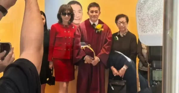 梁朝偉獲榮譽博士,梁媽媽佩戴百萬胸針露面,劉嘉玲現場鼓掌慶賀