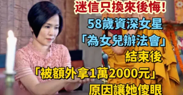 「為女兒辦法會」結束後,58歲資深女星被威脅 「繳付1萬2000元」:迷信只換來後悔!