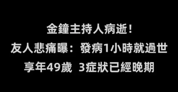 金鐘主持人病逝!友人悲痛曝:發病1小時就過世, 享年49歲3症狀已經晚期