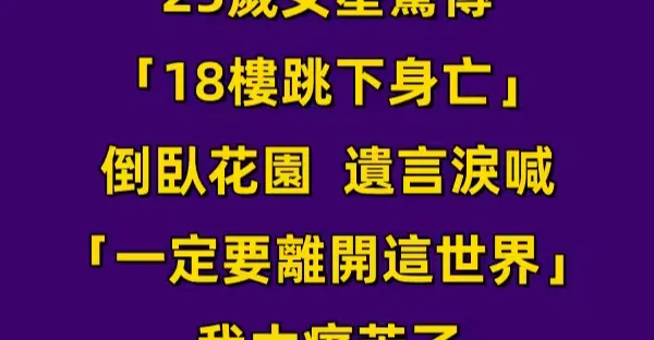 才傳簡訊給媽媽!25歲女星驚傳「18樓跳下身亡」倒臥花園 遺言淚喊「一定要離開這世界」我太痛苦了!