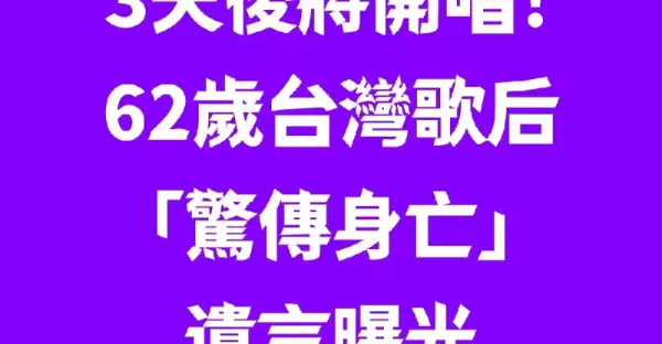 3天後將開唱!62歲台灣歌后「驚傳身亡」遺言曝光
