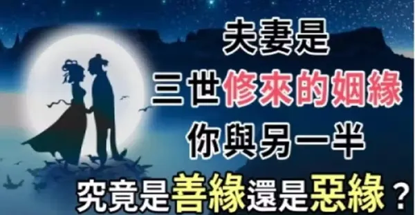 夫妻是「三生三世」修來的姻緣,你與另一半究竟是「善緣」還是「惡緣」?