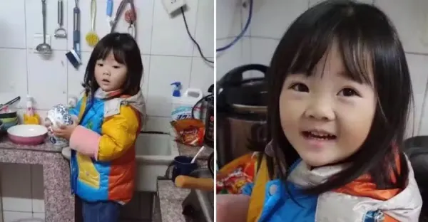 單親爸爸送完外送回家,進門看到3歲女兒正在刷碗,回眸一笑太治癒,爸爸含淚:所有疲憊都一掃而空