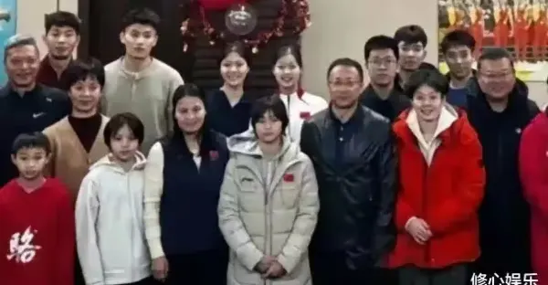 跳水隊新年合影:嬋寶略顯拘謹,宛若大姑娘,陳若琳圓潤了不少~~