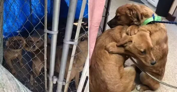 狗狗一家「被關鐵網」自生自滅!獲救後兩寶「互相依偎」暖心安撫彼此:我們會沒事的