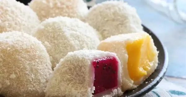 水果糯米糍,糯米皮包著一大塊水果,吃著很過癮