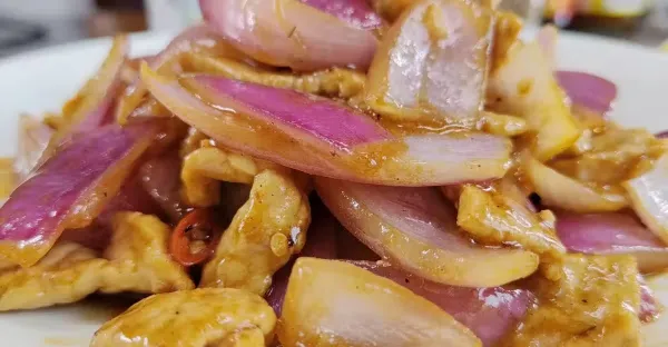 洋蔥和雞肉搭配成一道菜,美食界的新大陸,配上冰鎮可樂,太香了