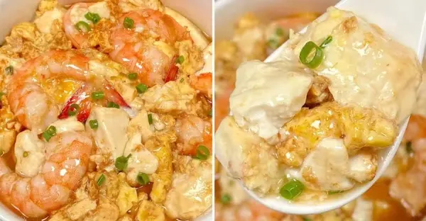 雞蛋蝦仁抱豆腐巨好吃,有幸在親戚家吃過一回,被驚艷到了!