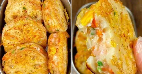 好吃又好看的藕夾蝦滑,外面焦香焦香的,咬開還會爆汁