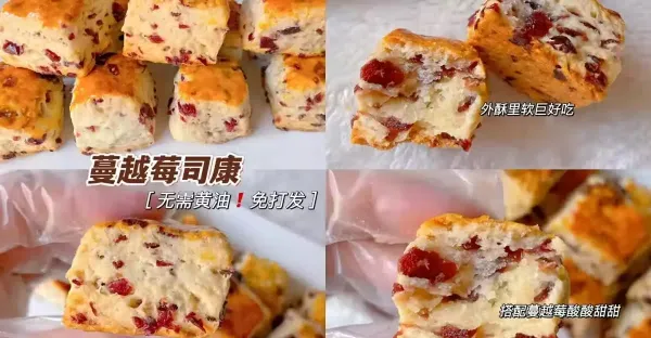 免打發❗️用手抓一抓就能做的低糖蔓越莓司康