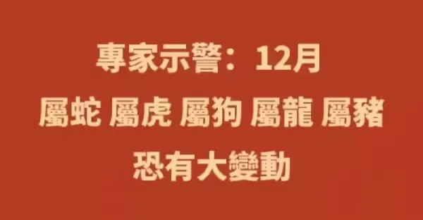 專家示警:12月「屬蛇 屬虎 屬狗 屬龍 屬豬」恐有大變動!