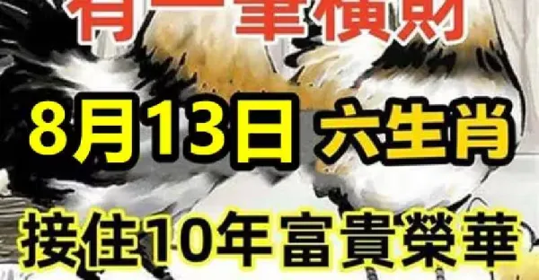 8月13日有一筆橫財,六生肖接住10年富貴榮華,不缺錢花.