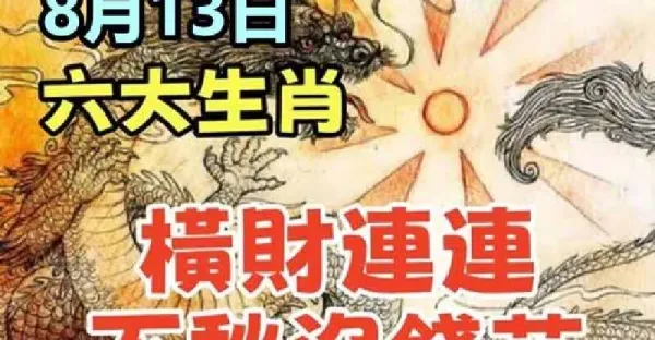 8月13日橫財連連,不愁沒錢花的六大生肖.
