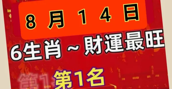 鈔票如雨下 「8月14日」 6生肖 財運最旺 「 第1名 財自動上門」