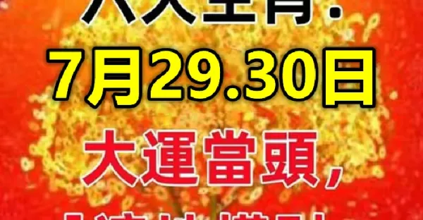 7月29.30日大運當頭,旺到「遍地橫財」的生肖