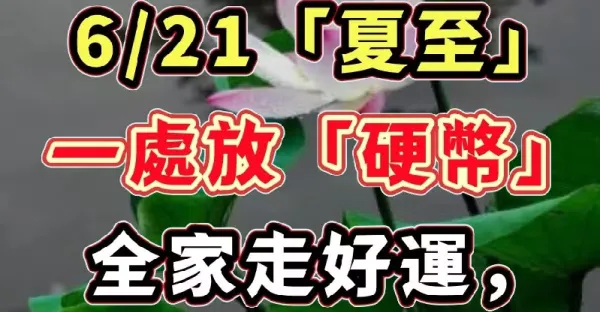 就在拜六!6/21「夏至」一處放「硬幣」全家走好運,財運旺旺來!