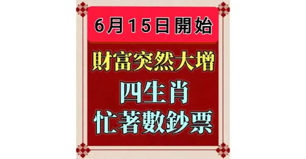 6月15日馬上發橫財,六大生肖開心數鈔票!