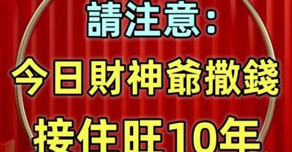 五大生肖請注意:今日財神爺撒錢,接住旺10年!