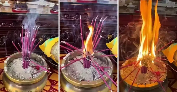 女子「給財神上香」,結果香竟從中間燒起來,網驚:這可是斷頭香啊!