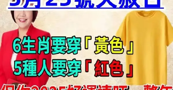 算命師說:5月25號天赦日!6生肖要穿黃色,5種人要穿紅色,保你平安災難消除!2025好運連旺一整年!