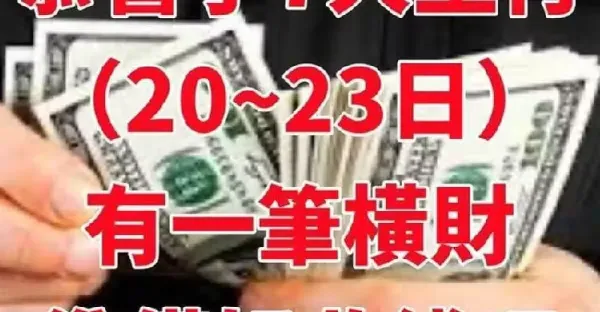 恭喜了7大生肖,在未來三天(5月20~23日)即將有一筆橫財,準備好收錢吧