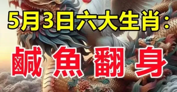 5月3日六大生肖:鹹魚翻身,有一筆橫財砸來~