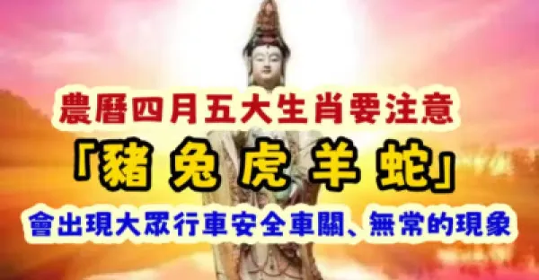 農曆四月五大生肖要注意「豬、兔、虎、羊、蛇」會出現大眾行車安全、車關、無常的現象