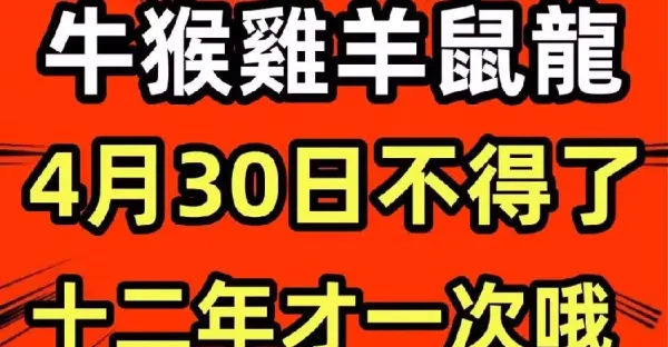 生肖(牛猴雞羊鼠龍)火了,4月30日不得了,十二年才一次喔!