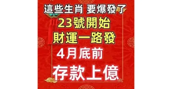這些生肖要爆發了,23號開始財運一路發,4月底前存款上億!