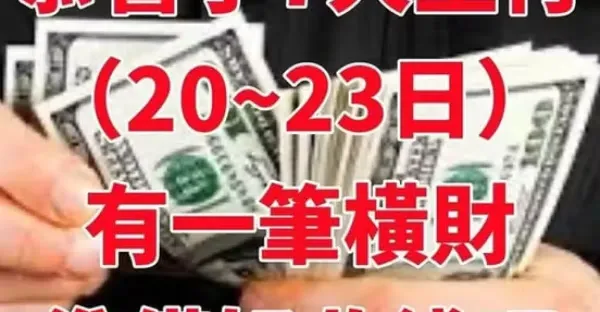 恭喜了7大生肖,在未來三天(4月20~23日)即將有一筆橫財!準備好收錢吧