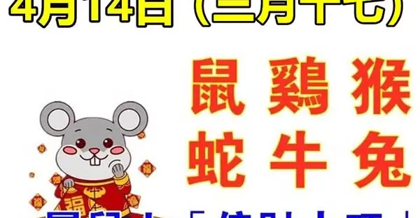 4月14日生肖運勢_鼠、雞、猴大吉!