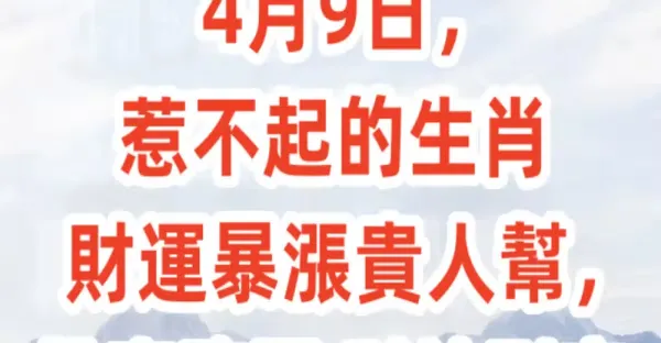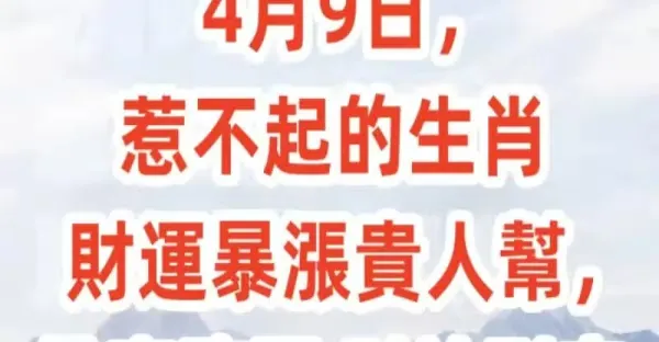 4月9日惹不起的生肖,財運暴漲貴人幫,雙喜臨門財神到家!