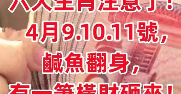 4月9.10.11號,鹹魚翻身,有一筆橫財砸來的生肖!