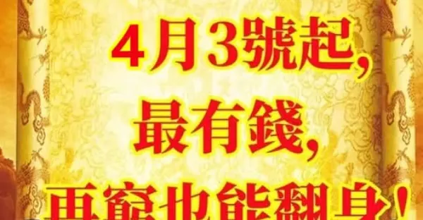 4月3.4.5號開始,腳踩聚寶盆的六生肖,開始走好運