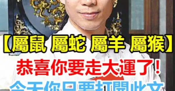 【屬鼠 屬蛇 屬羊 屬X】恭喜你要走大運了,一切貧窮、霉運、疾病統統送走
