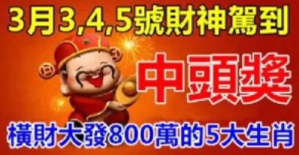 3月3,4,5號財神駕到,橫財大發的五大生肖!