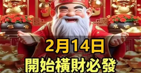 2月14日開始橫財必發,大獎連中的3生肖,財運前三甲