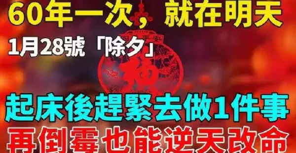 60年一次,就在明天!1月28號「除夕」,起床後趕緊去做1件事,再倒霉也能逆天改命!