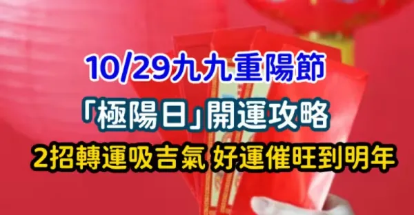 10/29九九重陽節「極陽日」開運攻略!2招轉運吸吉氣 好運催旺到明年
