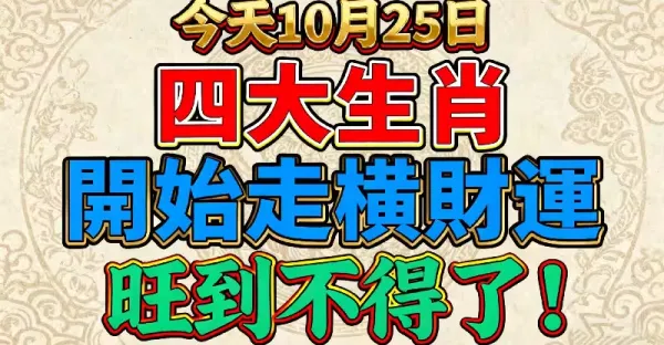 今天10月25日,四大生肖開始走橫財運,旺到不得了!