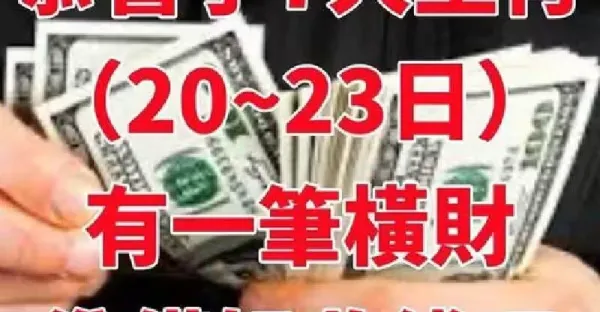 恭喜了7大生肖,在未來三天( 10月20~23日)即將有一筆橫財,準備好收錢吧