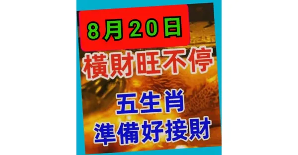 8月20日 「 橫財旺不停 」 五生肖 準備好接財