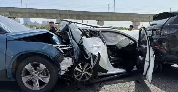 國道3車追撞!白車被包夾擠壓「4門變2門」 恐怖現場畫面曝