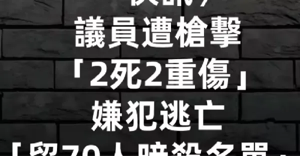 快訊/議員遭槍擊「2死2重傷」...嫌犯逃亡「留70人暗殺名單」!