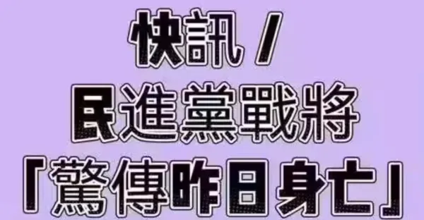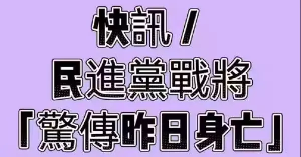 快訊/民進黨戰將「驚傳昨日身亡」!!