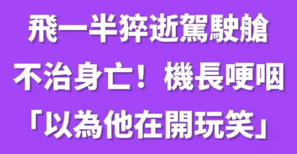 57歲副機長 「飛一半猝逝駕駛艙」不治身亡!機長哽咽「以為他在開玩笑」最後遺言曝光...