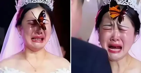 婚禮上,「一隻胡蝶死守新娘」遲遲不走「新娘愣3秒」當場淚崩顫喊: 今天他的真來了