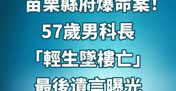 快訊/苗栗縣府爆命案!57歲男科長「輕生墜樓亡」...最後遺言曝光 #才上任2個月!