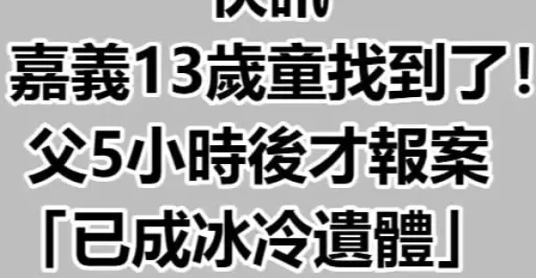 快訊/嘉義13歲童找到了!父5小時後才報案「已成冰冷遺體....」