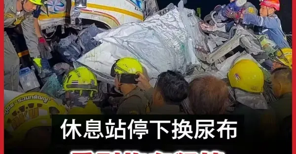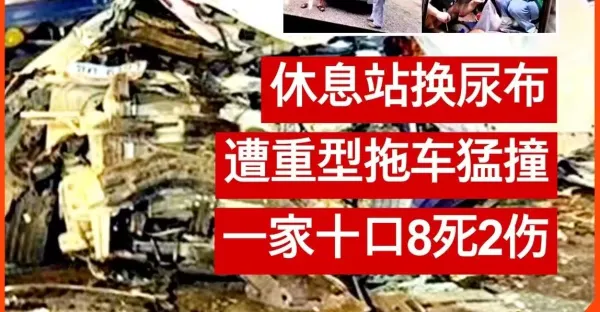 休息站換尿布 不幸遭重型拖車猛撞 一家十口8死2傷